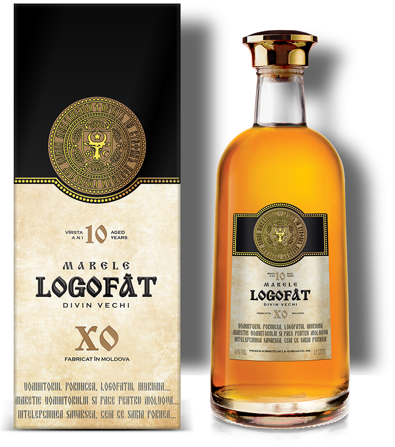 Ten-year old Logofăt divin is an exquisite brandy. The color is dark amber with golden glints. Its aroma combines fruit and flower notes harmoniously. Best of all, it is revealed if you pour it into a tulip-shaped glass and let it “breathe” by warming it in your palms.