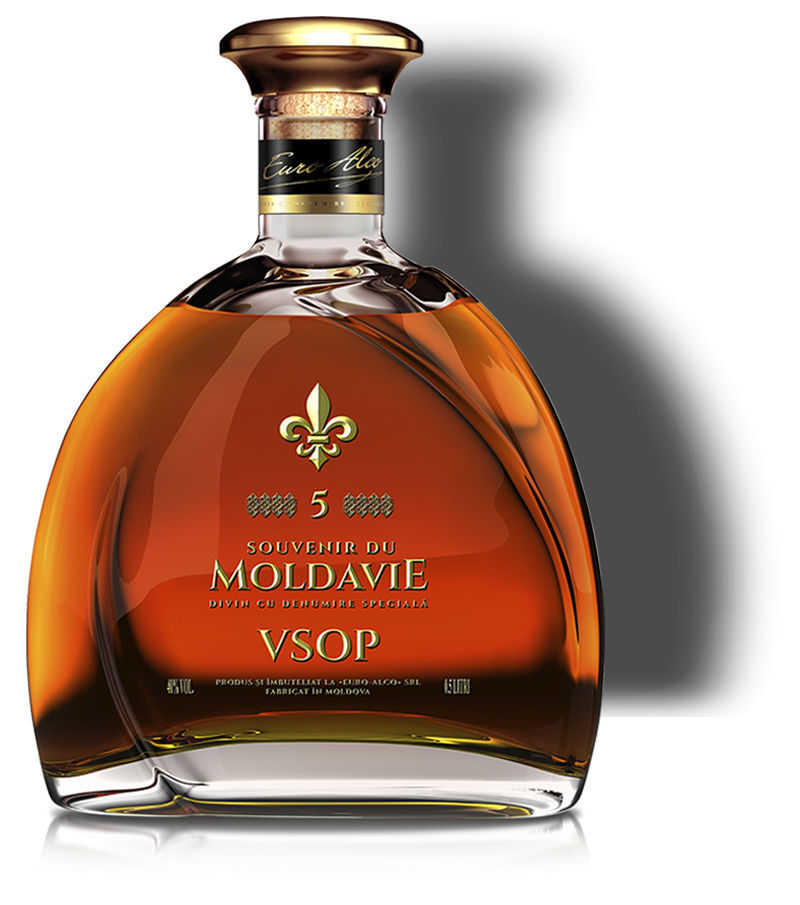 Brandy "Souvenir du Moldavie" 10 years is made from wine distillates, aged less than 10 years. It is of golden amber colour, and has a unique, harmonious, impressing taste with a slight flower and chocolate tone, a fine, delicate and rich bouquet with well expressed tones of aging. It is the elite man's drink.
